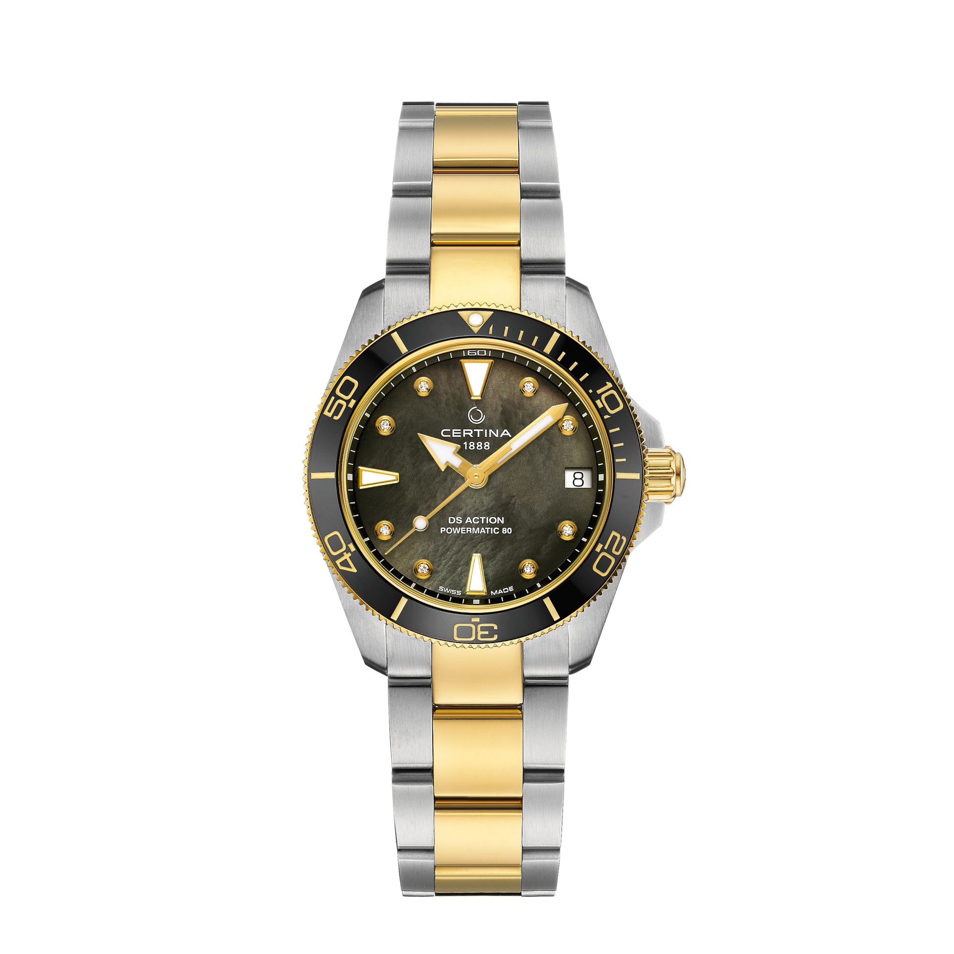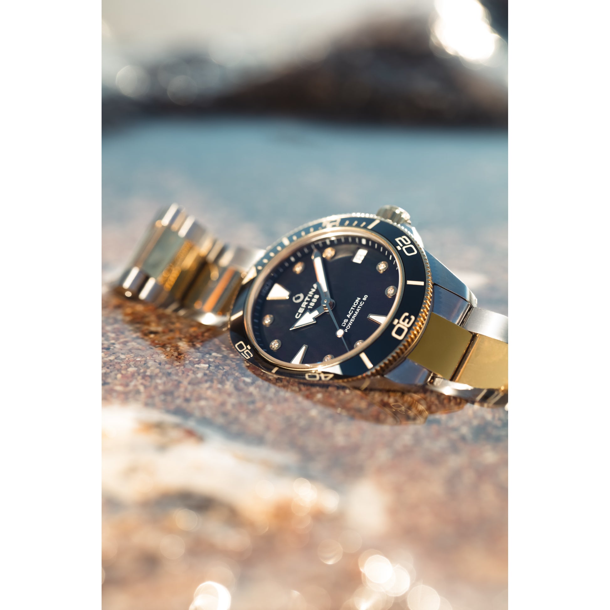 The sea is always in motion - just like life. The DS Action 34.5 mm proves to be the ideal companion in modern everyday life, regardless of whether you like to go with the flow or prefer to swim against the tide. Its delicate diameter of 34.5 mm makes the sporty, elegant wristwatch extremely wearable even on a narrow wrist. The mother-of-pearl-coated dial set with eight diamonds exudes a touch of luxury.