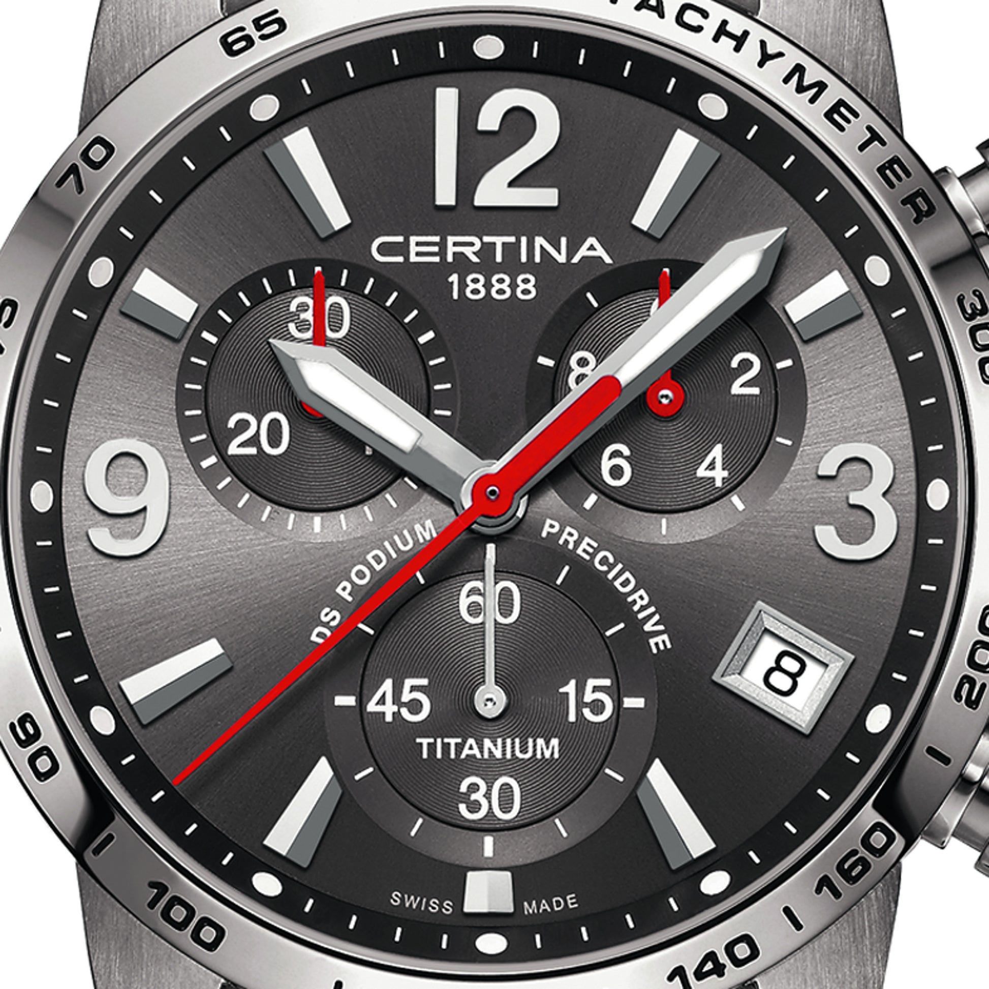 Un classique, interprété de manière moderne : Avec PRECIDRIVE – mouvement à quartz, dixièmes de seconde en temps réel et une taille impressionnante de 41 mm, cette nouvelle édition du populaire DS Podium Chronograph offre encore plus de sportivité et de précision.